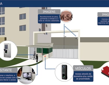 Controle de Acesso de Pedestres: Todos os visitantes terão entrada liberada apenas após cadastro obrigatório com documento e indicação do apartamento de destino.